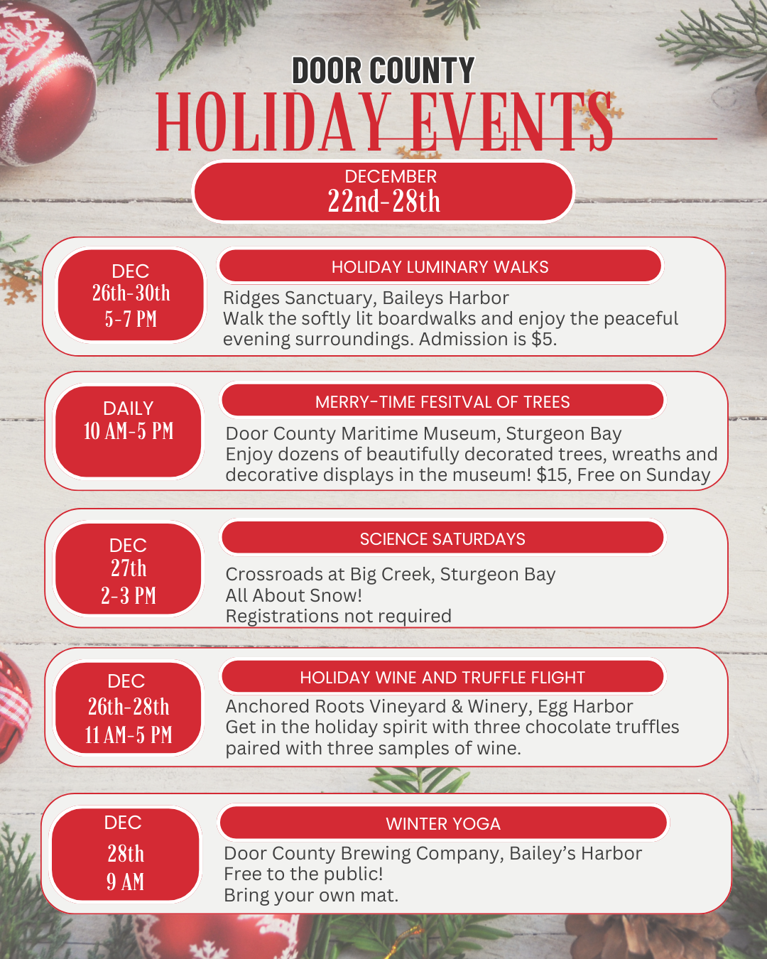 This Week’s Door County Holiday Activities December 22nd-28th